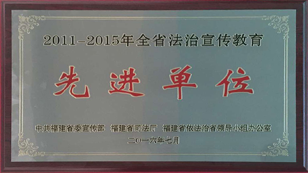 公司榮獲“2011-2015年全省法治宣傳教育先進單位”榮譽稱號